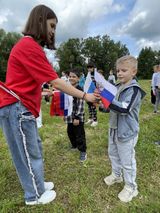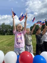 В преддверии Дня России, 11 июня, Активисты Движения Первых ГБПОУ "Ржевский колледж " Виктория Новожеева и Елизавета Ризкова под руководством советника руководителя по воспитанию Валентины Владимировны Андреевой для детей лагеря дневного пребывания "Звездный" Хорошевской НОШ провели флешмоб "Я люблю тебя Россия" .