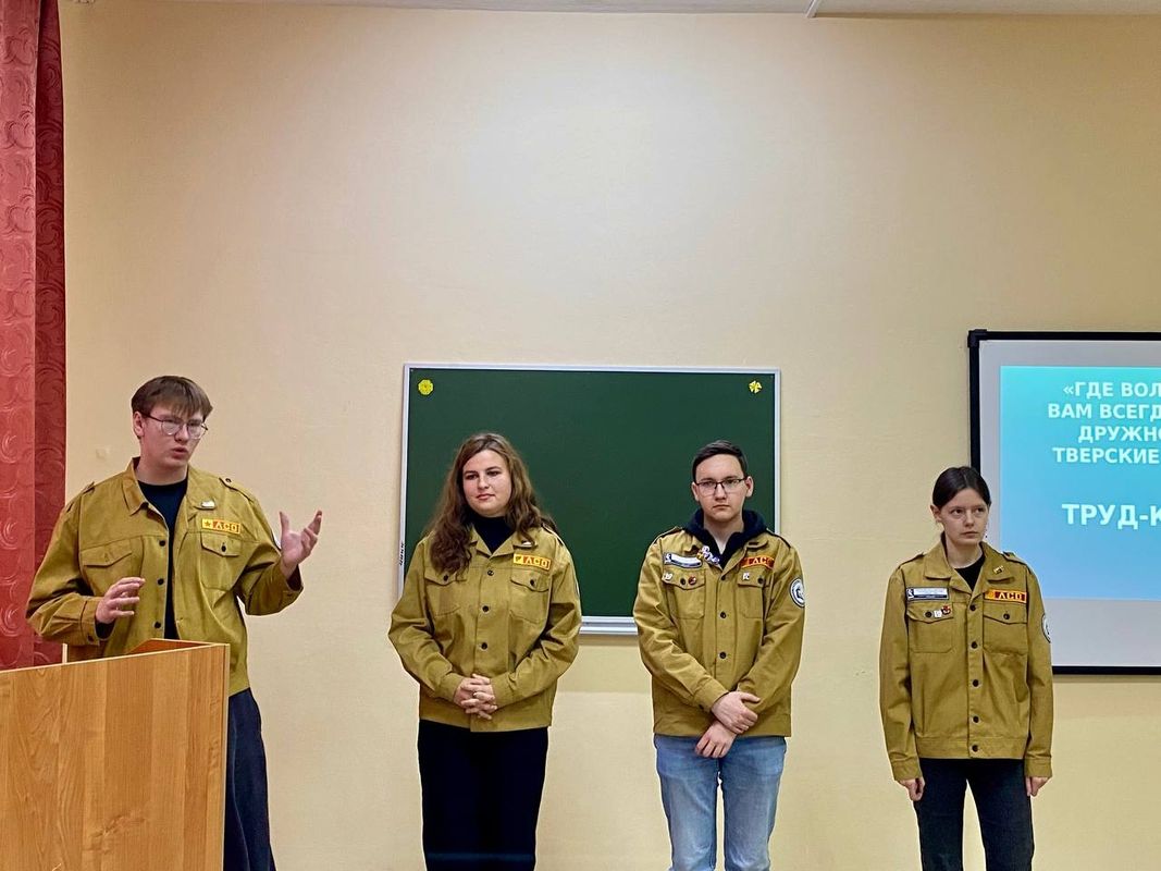 Для новобранцев был проведен мастер-класс в форме игры, где им необходимо было выучить девиз Тверских отрядов и Всероссийскую кричалку - "Труд - крут!".