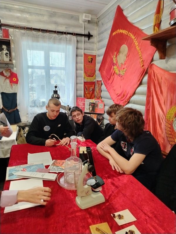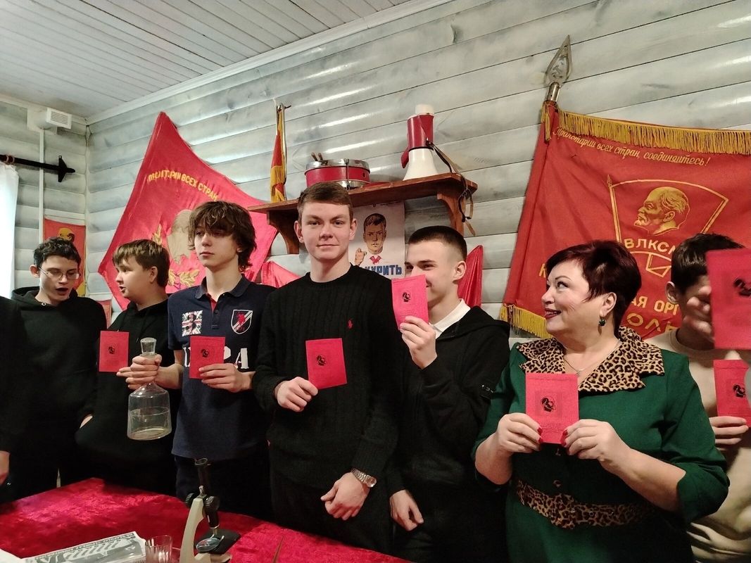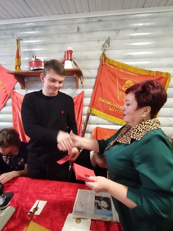 В конце мероприятия сотрудники музея вручили участникам квеста памятные сувениры комсомольский билетов.