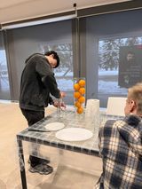 Но лекция не была бы такой запоминающейся, если бы не практическая часть, которая заставила каждого участника выйти из зоны комфорта и погрузиться в процесс создания чего-то настоящего. Представьте: вместо привычных аудиторных упражнений студентам представилась уникальная возможность — выжить на настоящей соковыжималке для цитрусовых Juicy Salif mini, добывая себе… апельсиновый сок!