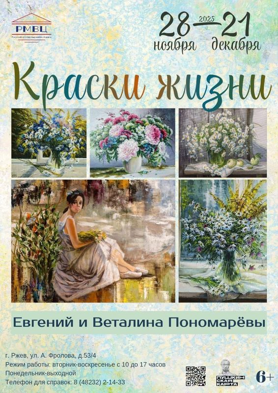 В экспозиции «Краски жизни» представлено более 60 работ союза искусств двух талантливых людей. Это мир ярких эмоций, вдохновляющих образов и глубоких переживаний, запечатлённых художниками на холстах. В картинах заключена некая сила жизни, которая идёт от самого художника и передаётся зрителю.
