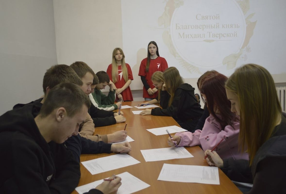 В этот памятный день для студентов ГБПОУ "Ржевский колледж советник руководителя по воспитанию Валентина Владимировна Андреева и активисты Движения Первых Дарья Зуева и Ангелина Сныткина провели встречу "Жизнь и подвиг князя Михаила Тверского". Студенты вспомнили исторические факты, связанные с именем М. Тверского, и для закрепления материала решили кроссворд.