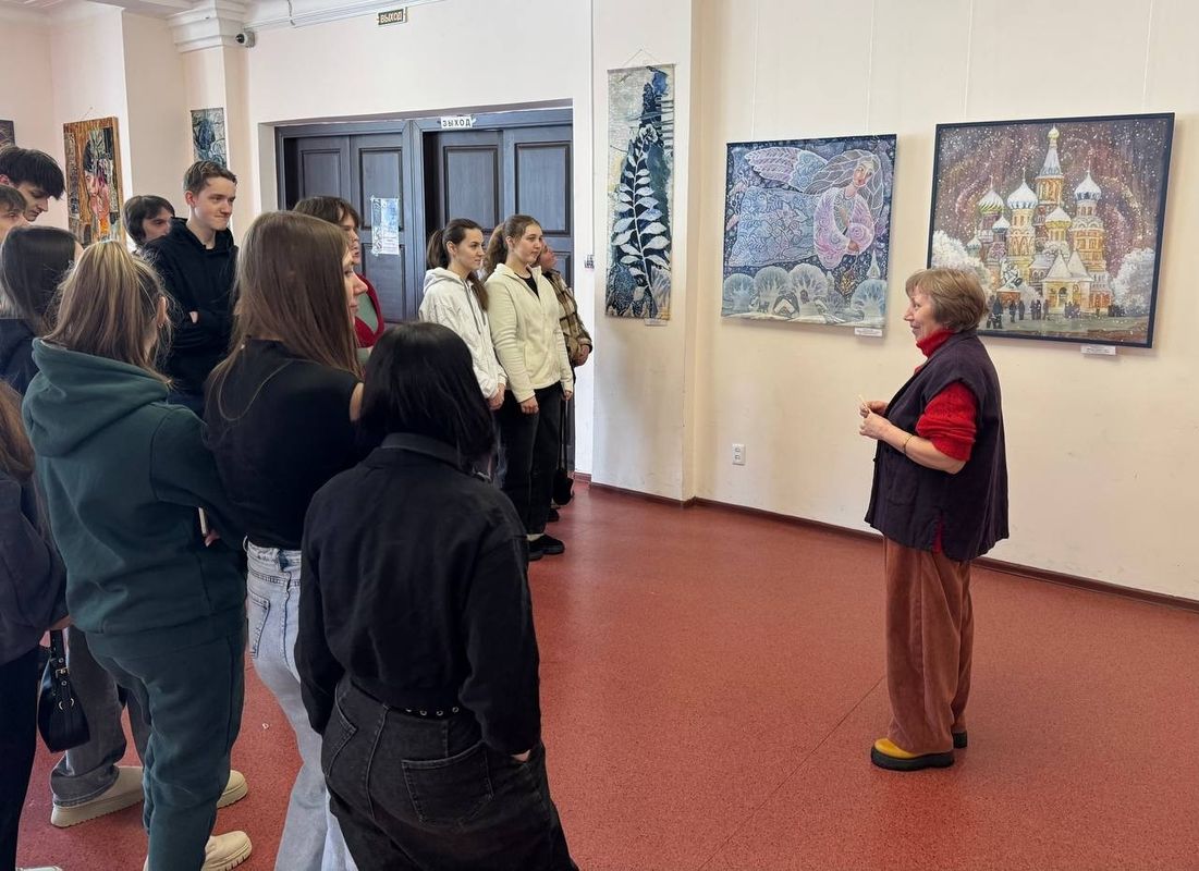 Во время экскурсии студентам рассказали об особенностях этой техники, этапах создания работ и тонкостях процесса, требующего терпения, точности и творческого мышления.